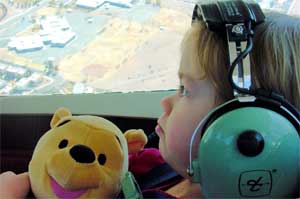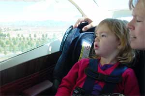 | "Oh boy, oh boy. I get to for a ride in the airplane!" | "Mom! Quit messin' with my head phones." | |