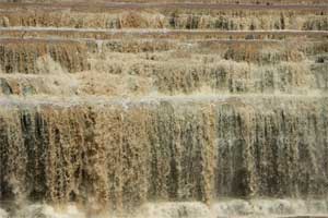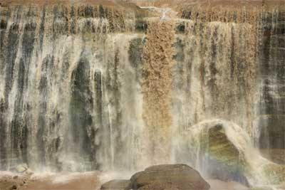 The river lives up to its name as it pours red, muddy water over the falls. | |
