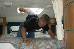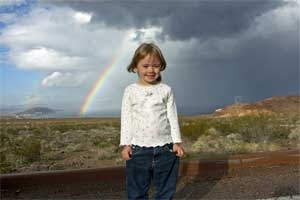 | Christmas 2004 -- We took Hailey to Lake Mead in the camper for lunch. It's not every "bedroom" that has a door in the ceiling. | A beautiful rainbow appeared while we were at the lake. | |