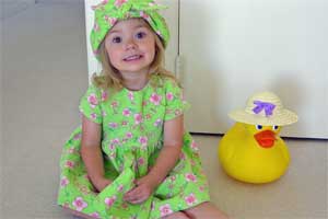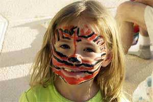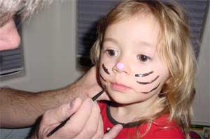 | Easter 2004. Grandma made the dress, hat and purse. | Papa got a face painting kit for his birthday | |