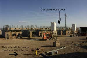 take over the house. So we started looking around for a warehouse and found a developer who was about to start on a small warehouse project here in Boulder City. It was supposed to be completed in April 2005, but because of the inevitable delays, it is just now being built. It is supposed to be finished by September. |